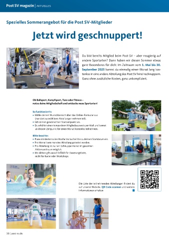 Spezielles Sommerangebot für die Post SV-Mitglieder